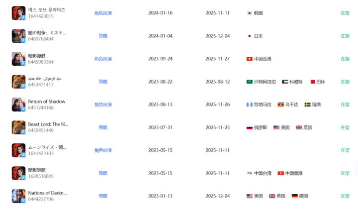 而在游戏线上,星合还致力于挖掘与包装小众题材,接连尝试了巨兽、西方幻想、原始部落、原始野兽、玩具拟人、黑帮等方向,期间推出了《Myths of Moonrise》(中文名:《暗影谜题》)、《Nations of Darkness》(中文名:《暗夜战争》)、《Beast Lord: The New Land》(中文名:《野兽领主》)等产品。
