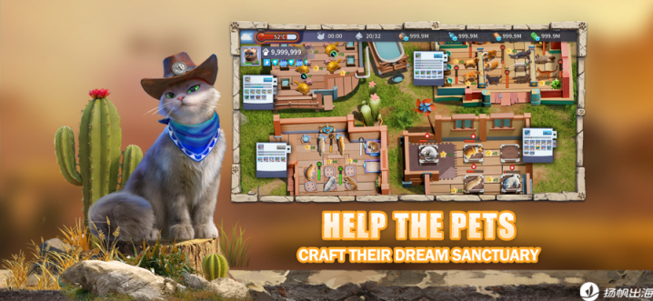 今年,星合上线动物拟人创世纪新游《CatDog World: After Humans》(中文名:《猫狗世界:人类消失之后》),该作玩法延续了“放置模拟经营+SLG”,在美术上同样保持着“动物写实感”。据媒体报道,游戏开测首日流水为4万美元,之后日流水一直保持维稳,在3.5万至5万之间浮动,开测16天总流水预估在68万左右(两周流水为58万),美国、德国、英国以41.29%、14.96%、9.54%的贡献位列TOP3。