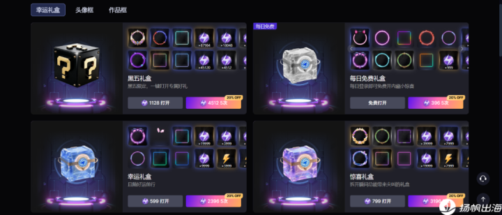 笔者注意到,这些算力还可用于购买平台“幸运礼盒”。这个礼盒类似于游戏里的“抽卡”玩法,“卡池”中既有头像框这样的个性化装扮,还有更高的算力奖励。此外,还有一个每日免费礼盒,用户只需要每日登陆就能领取。